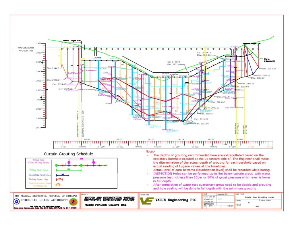 - Due to the foundation features contacts, consolidation and curtail grouting design for the dam was needed